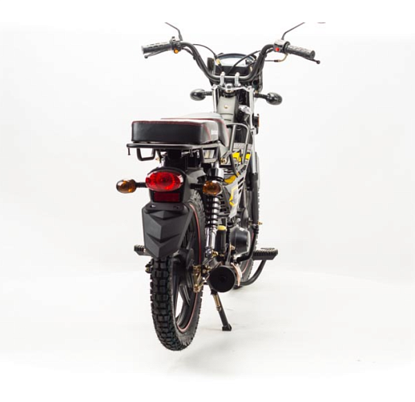 Модель оснащена электростартером и кикстартером, что облегчает запуск в любых условиях. Высота по седлу составляет 770 мм, что делает его удобным для водителей с разным ростом, а колесная база в 1200 мм обеспечивает хорошую управляемость и устойчивость на дороге. Вес мопеда — около 80 кг, что позволяет легко управлять им и транспортировать при необходимости.