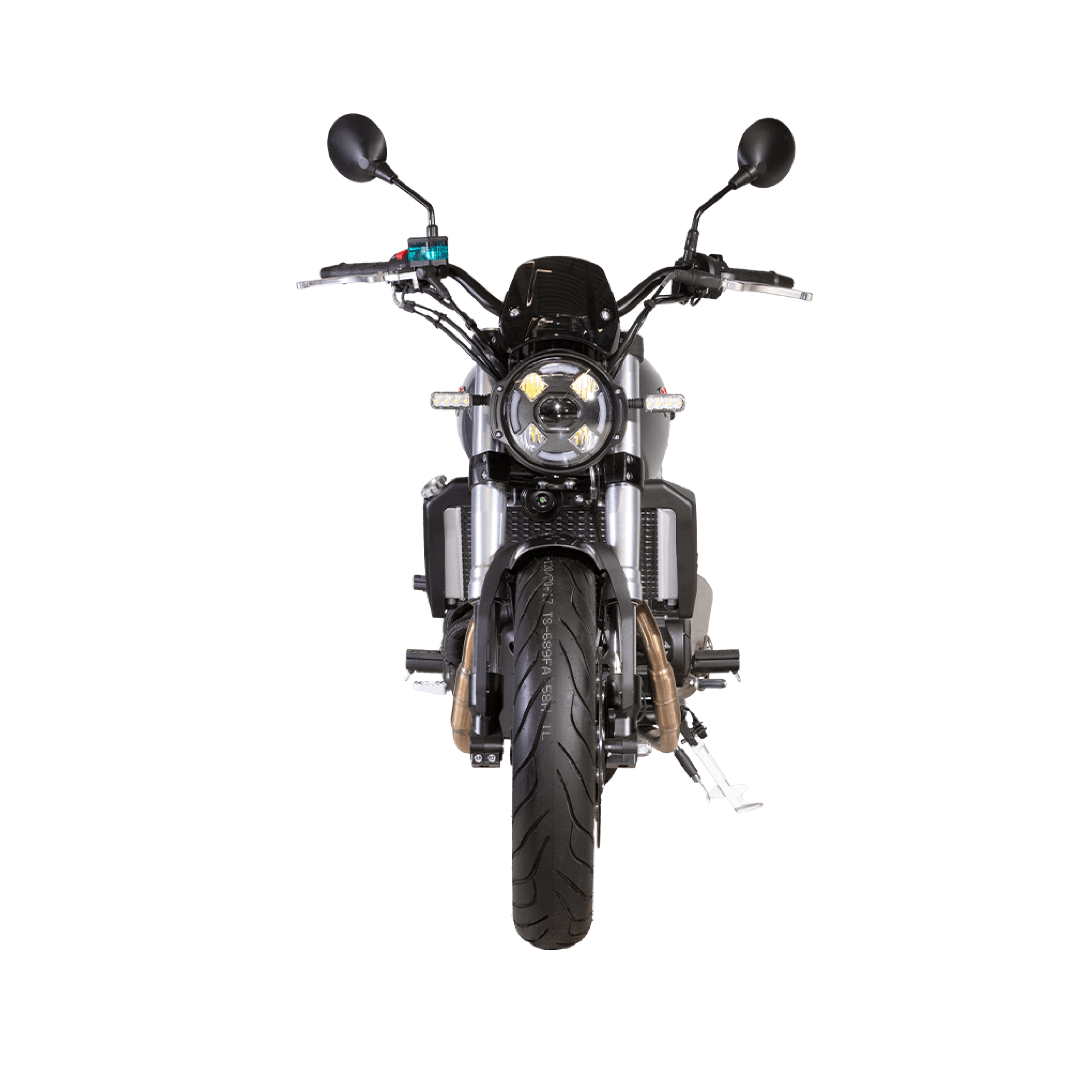 Подвеска настроена на повседневные поездки: перевёрнутая вилка спереди и двойные регулируемые амортизаторы сзади сглаживают неровности, сохраняя контроль на плитке и грунте. Дисковые тормоза с ABS по кругу добавляют уверенности при активном управлении. Спицованные колёса 19"/17" и приличный клиренс расширяют сценарии — от асфальта до лёгкого офф-роуда.