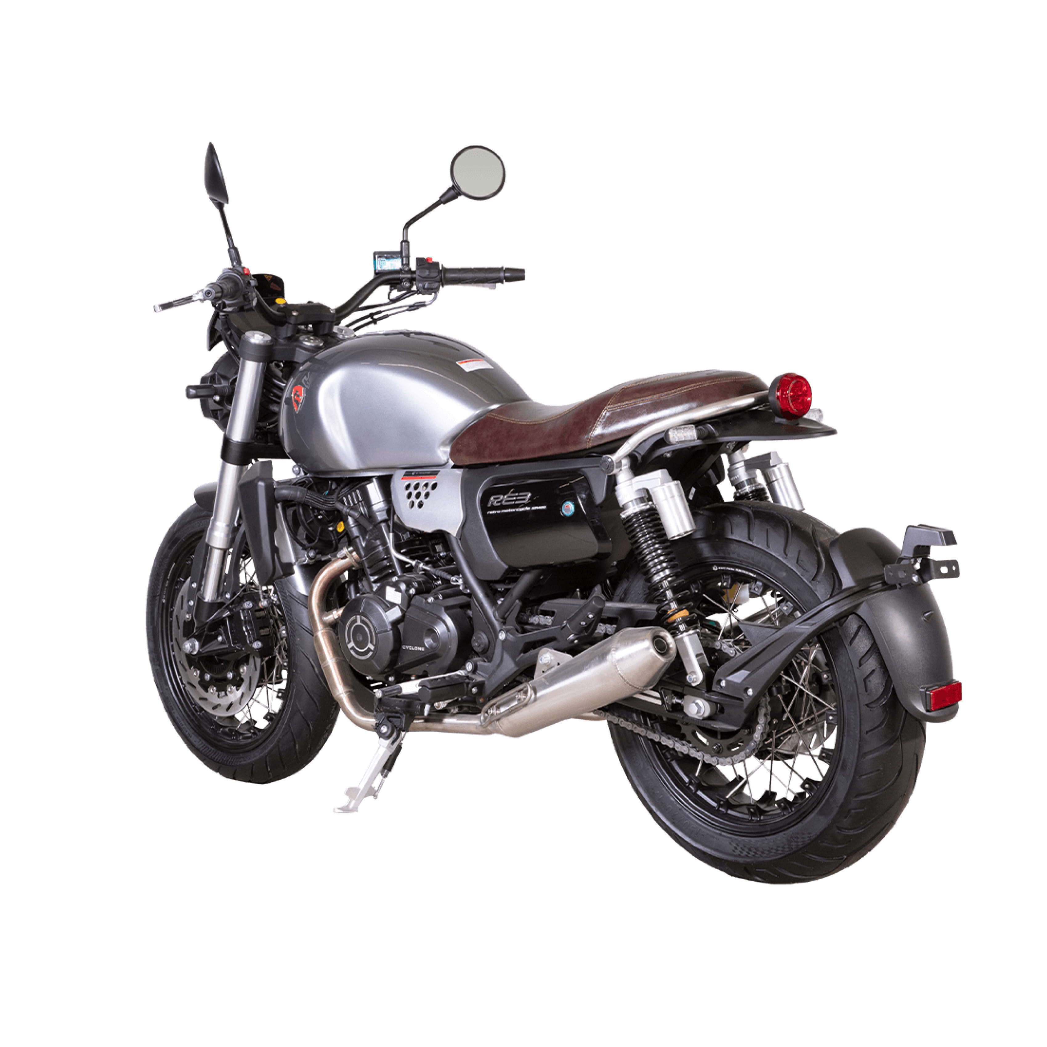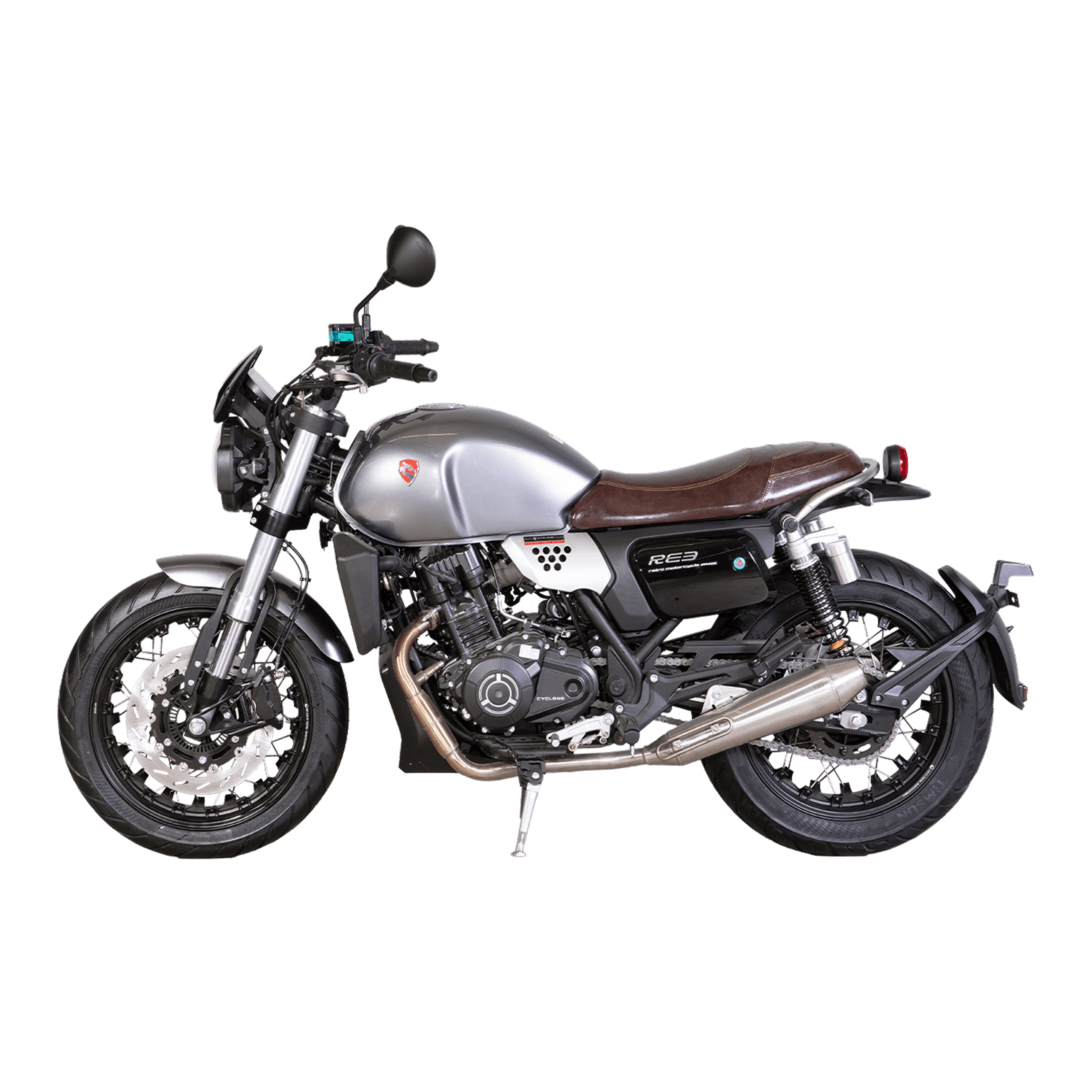 Cyclone RE3 (SR400) — нео-ретро дорожный мотоцикл формата scrambler, в котором классический дизайн сочетается с современной техникой. В основе — рядный двухцилиндровый четырёхтактный двигатель объёмом 400 см³ с жидкостным охлаждением и электронным впрыском, обеспечивающий ровную тягу с низов и предсказуемую динамику в городе и на трассе. Шестиступенчатая механика с цепным приводом работает чётко, пуски стабильные.