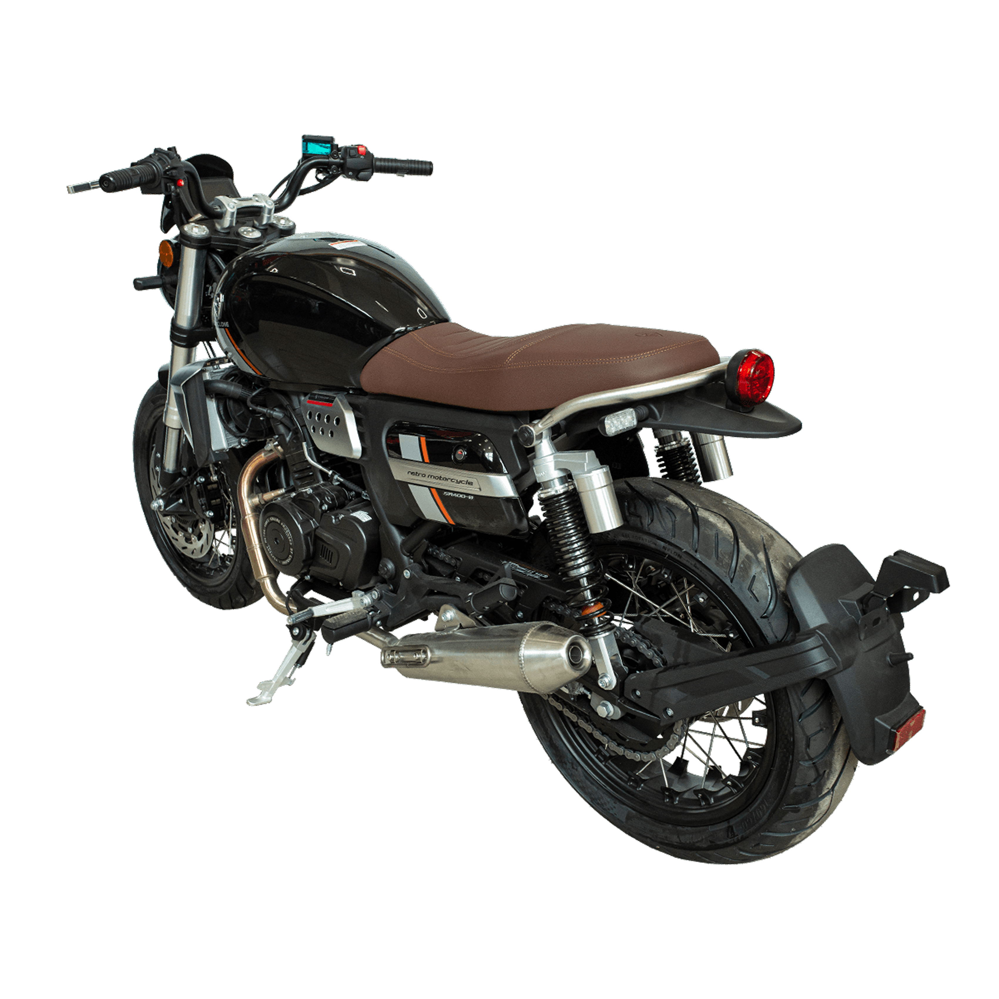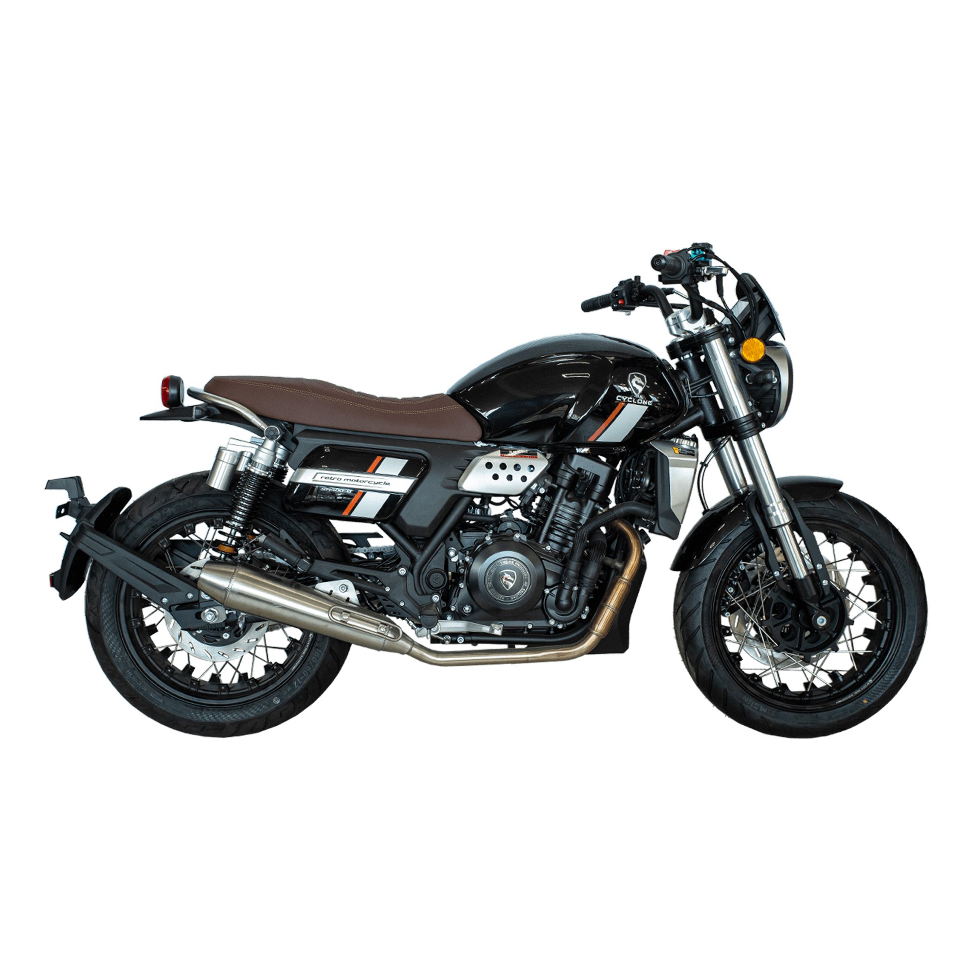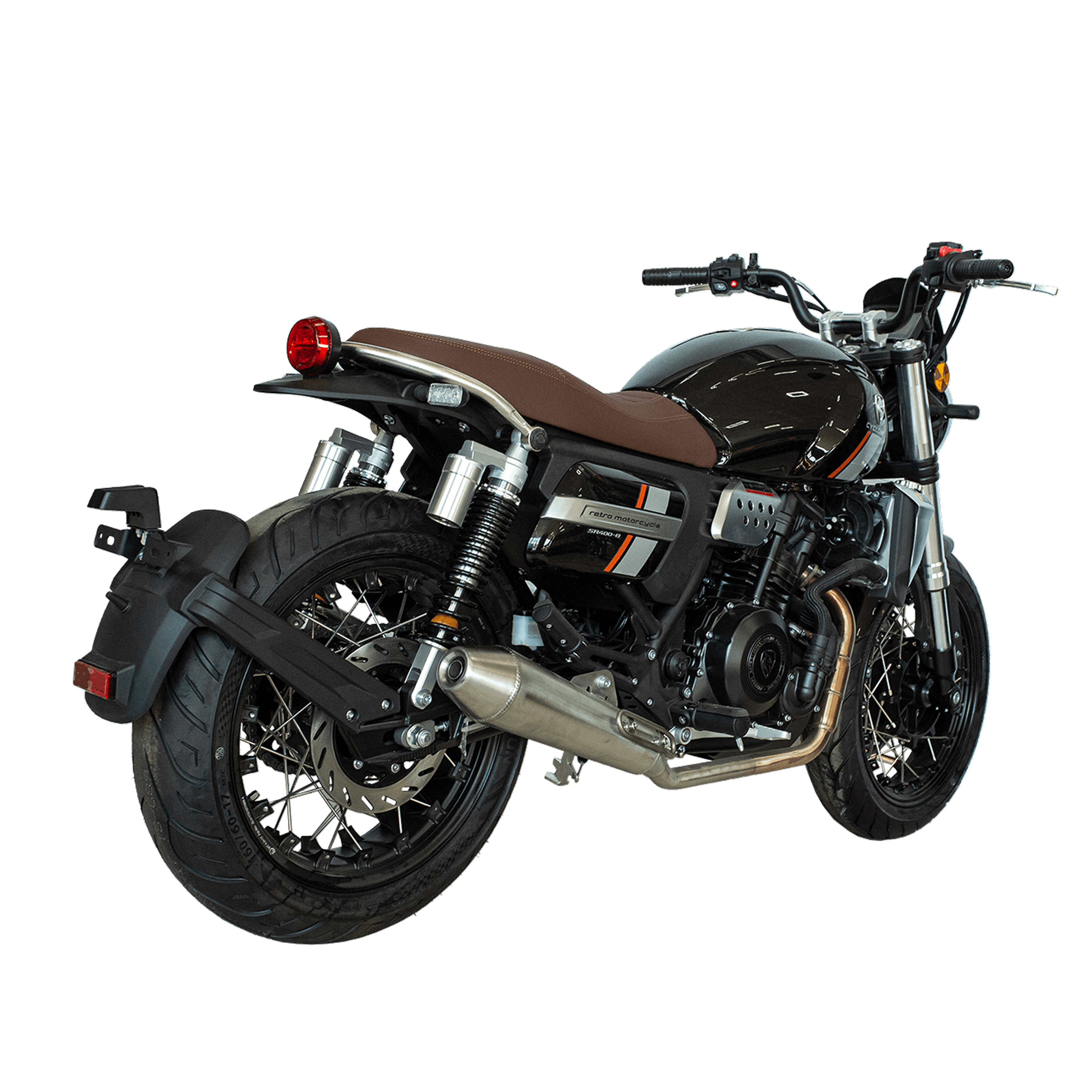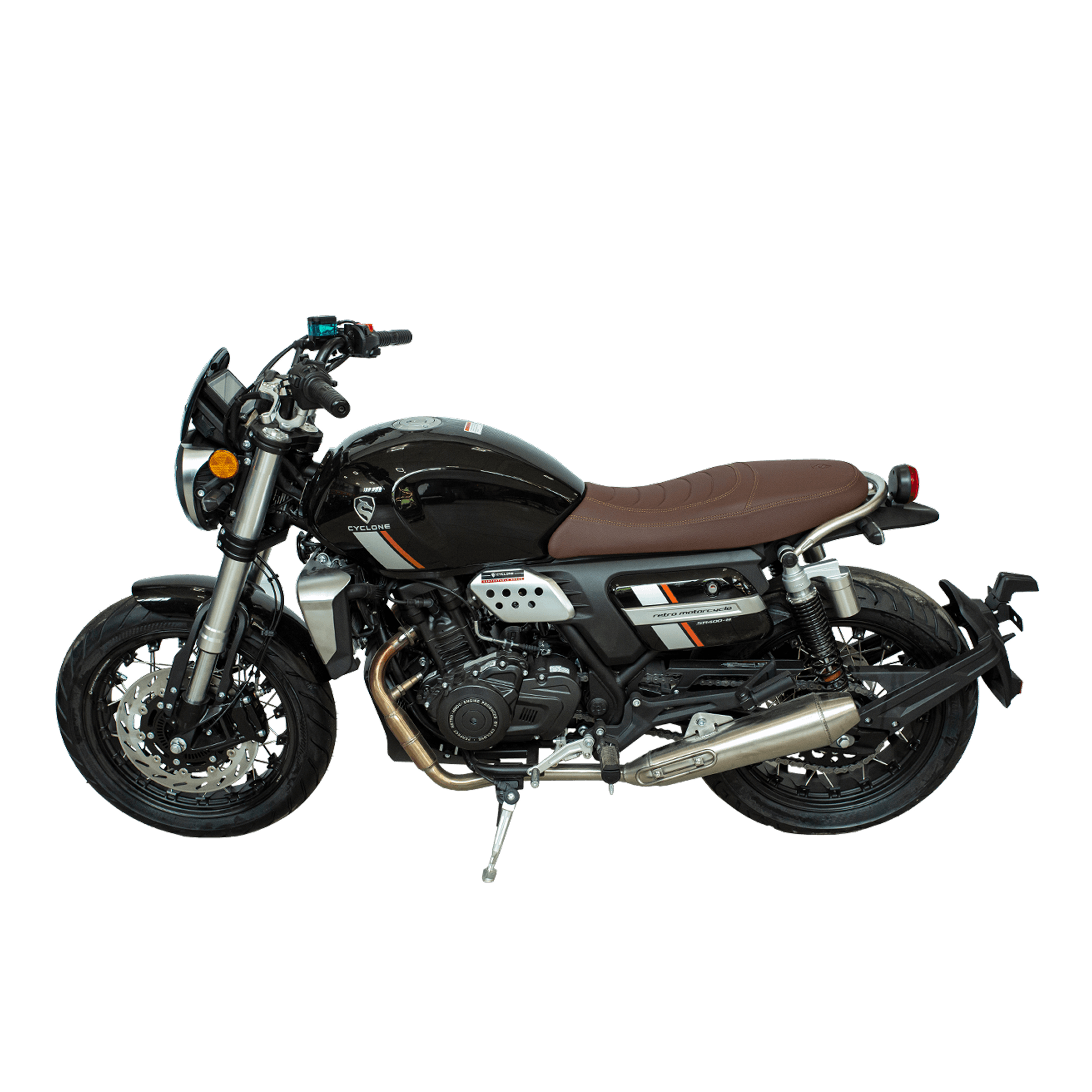 Дождевик для транспортаCyclone RE401 (SR400-B) — классический дорожный мотоцикл с харизматичным характером и солидной начинкой. Его сердце — современный двухцилиндровый четырёхтактник объёмом 401 см³ с жидкостным охлаждением и инжектором BOSCH, уверенно генерирующий около 43 л. с. при 9500 об/мин и обещающий ровную тягу даже при высоких оборотах. Тихий и мягкий старт обеспечивается за счёт придворной технологии впрыска, а шестиступенчатая механика с цепным приводом позволяет чётко контролировать динамику и плавность переключений.