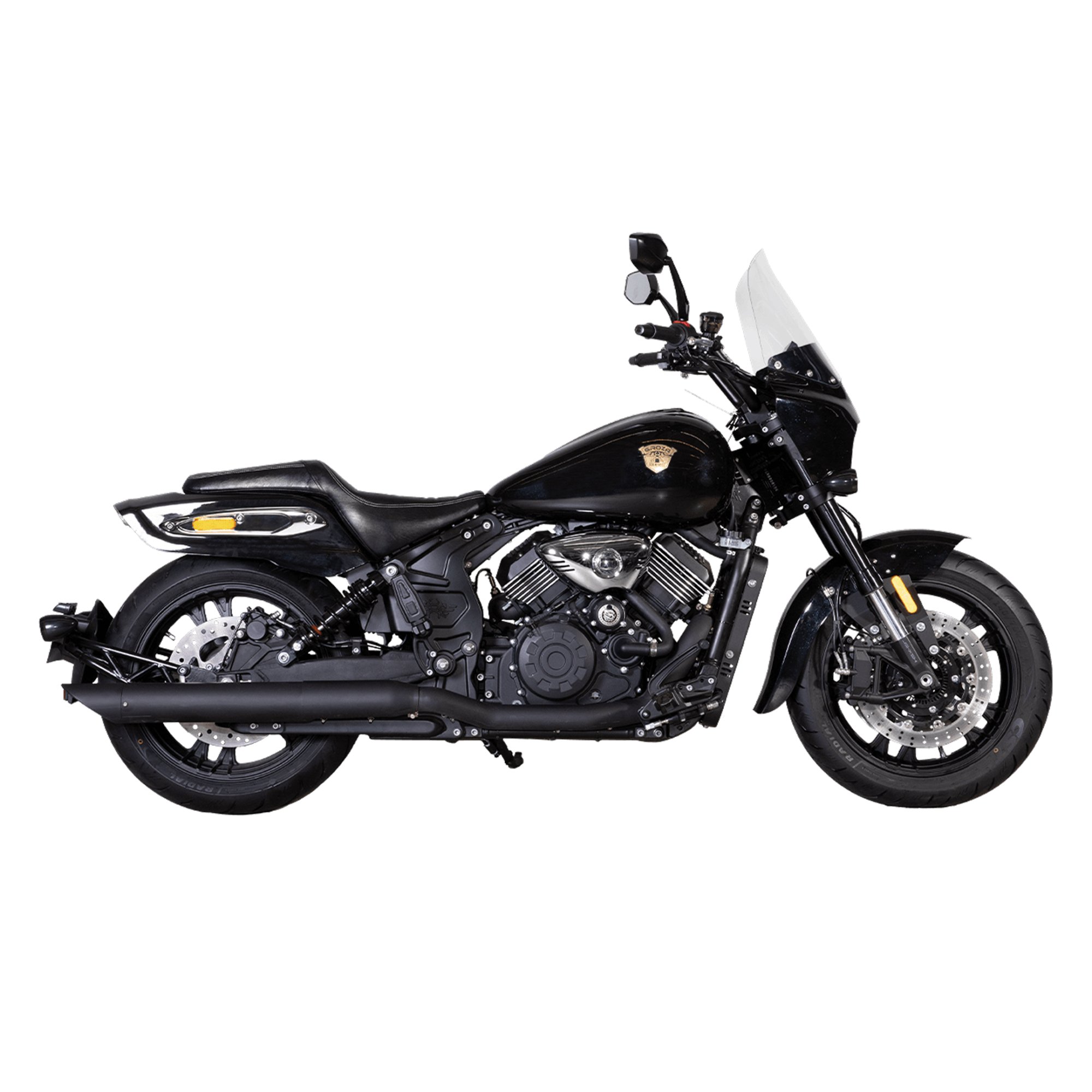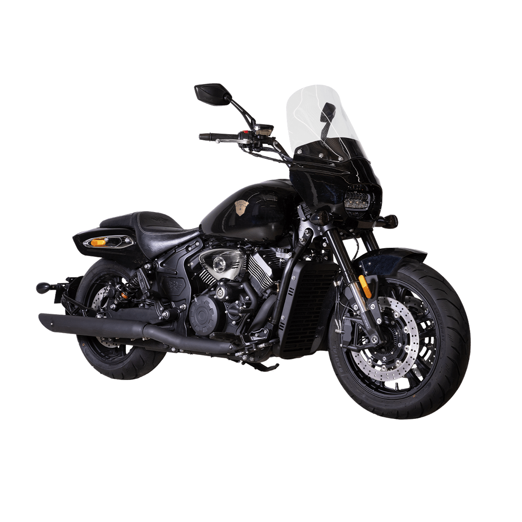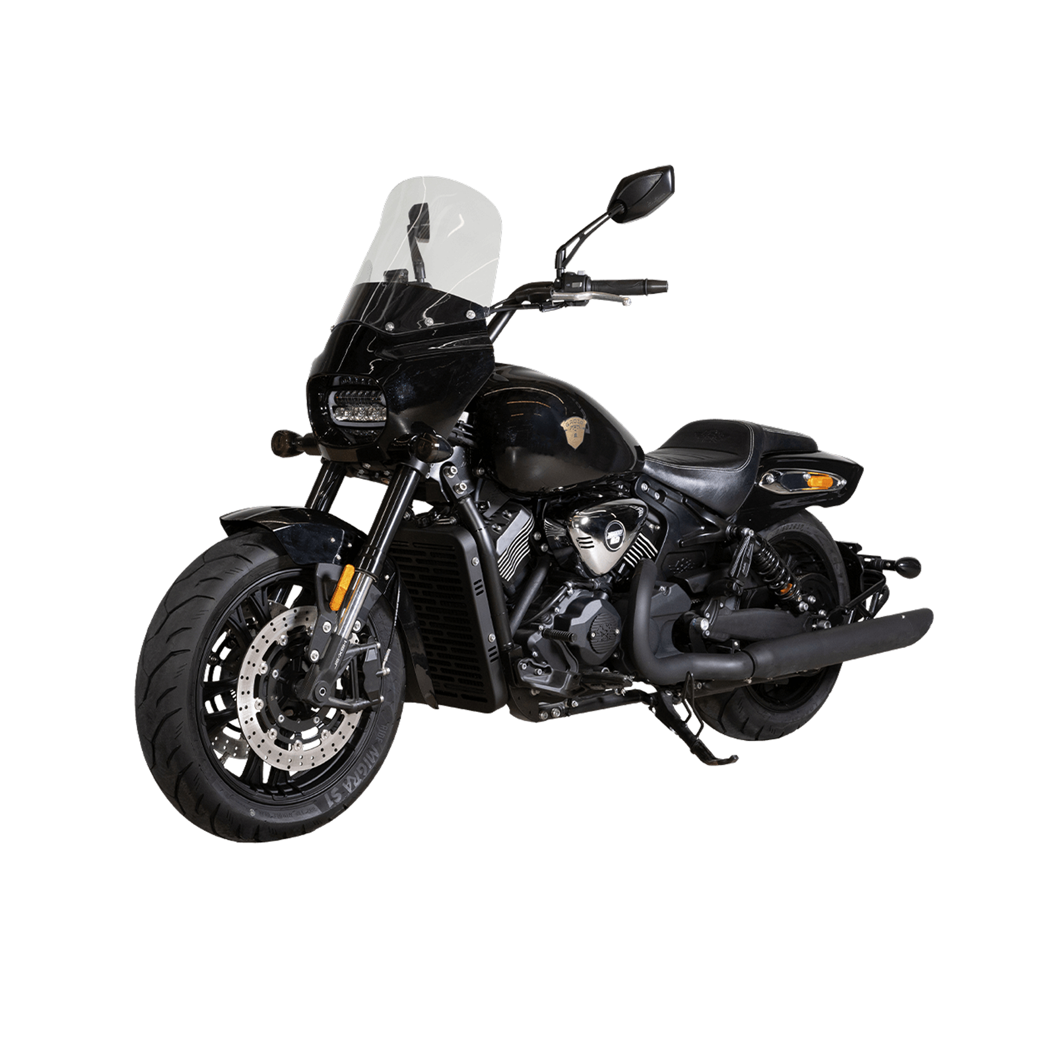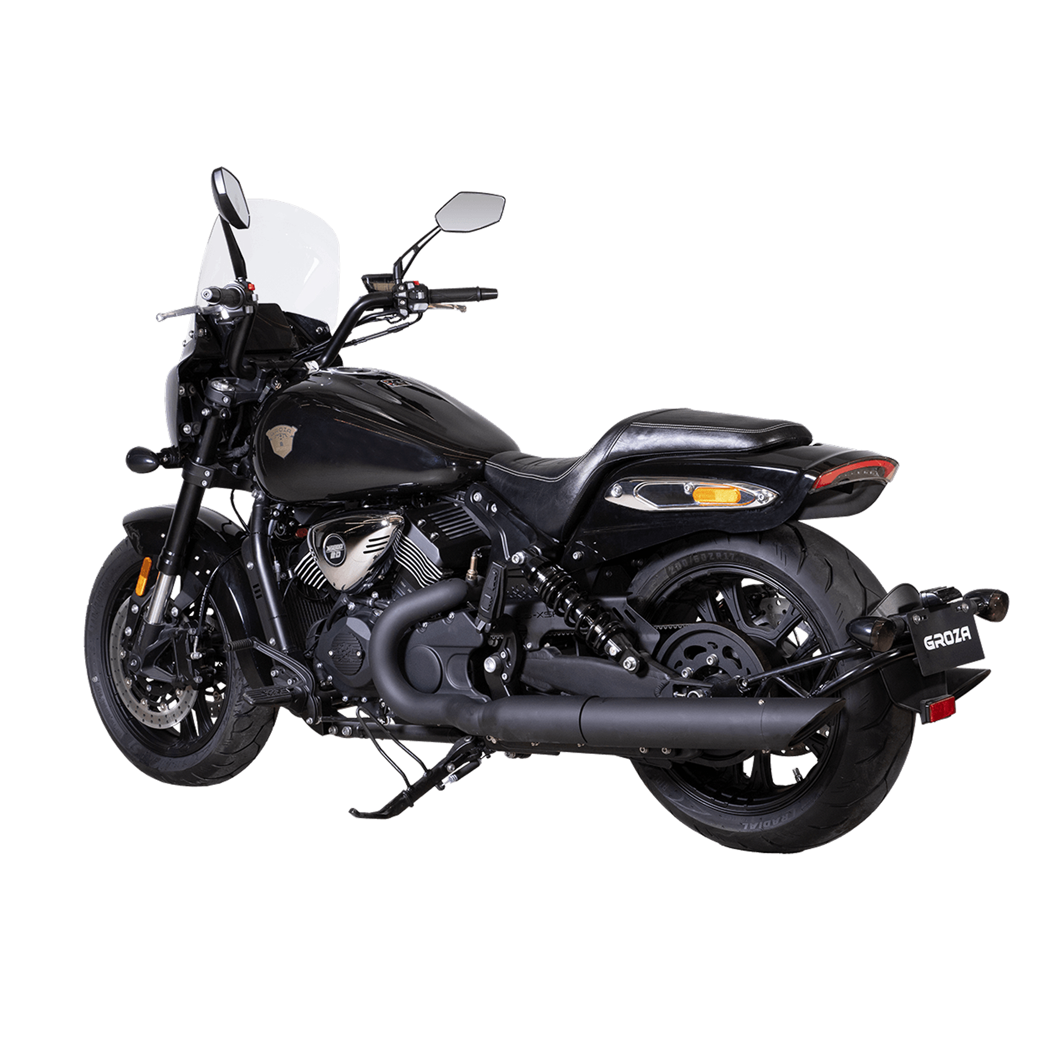 Литые диски 17″/17″, покрышки 140 мм спереди и 200 мм сзади