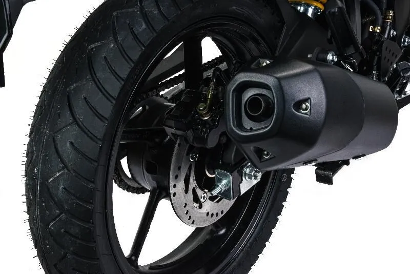 Этот мотоцикл имеет низкую высоту по седлу всего 800 мм, что облегчает посадку и управление для райдеров разного роста, а также создает комфортные условия для длительных поездок. Мотоцикл оснащен 5-ступенчатой трансмиссией, обеспечивающей плавное переключение и экономичную эксплуатацию, а система запуска включает как электростартер, так и кикстартер, что добавляет уверенности в надежности. Карбюратор PZ30 отвечает за оптимальную подачу топлива, что делает поездки экономичными.