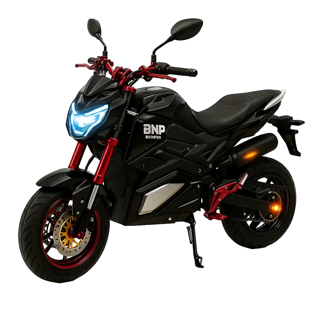 BNP Booster — стильный городской электромотоцикл, который гармонично сочетает лёгкость и энергию электрического привода. Это не просто транспорт для города, а надёжный помощник в повседневных поездках: электродвигатель мощностью примерно 2 кВт без задержек раскрывает тягу, обеспечивая динамичную реакцию в движении и комфортную скорость до 60 км/ч, что отлично подходит и для пробок, и для прогулок по городу.