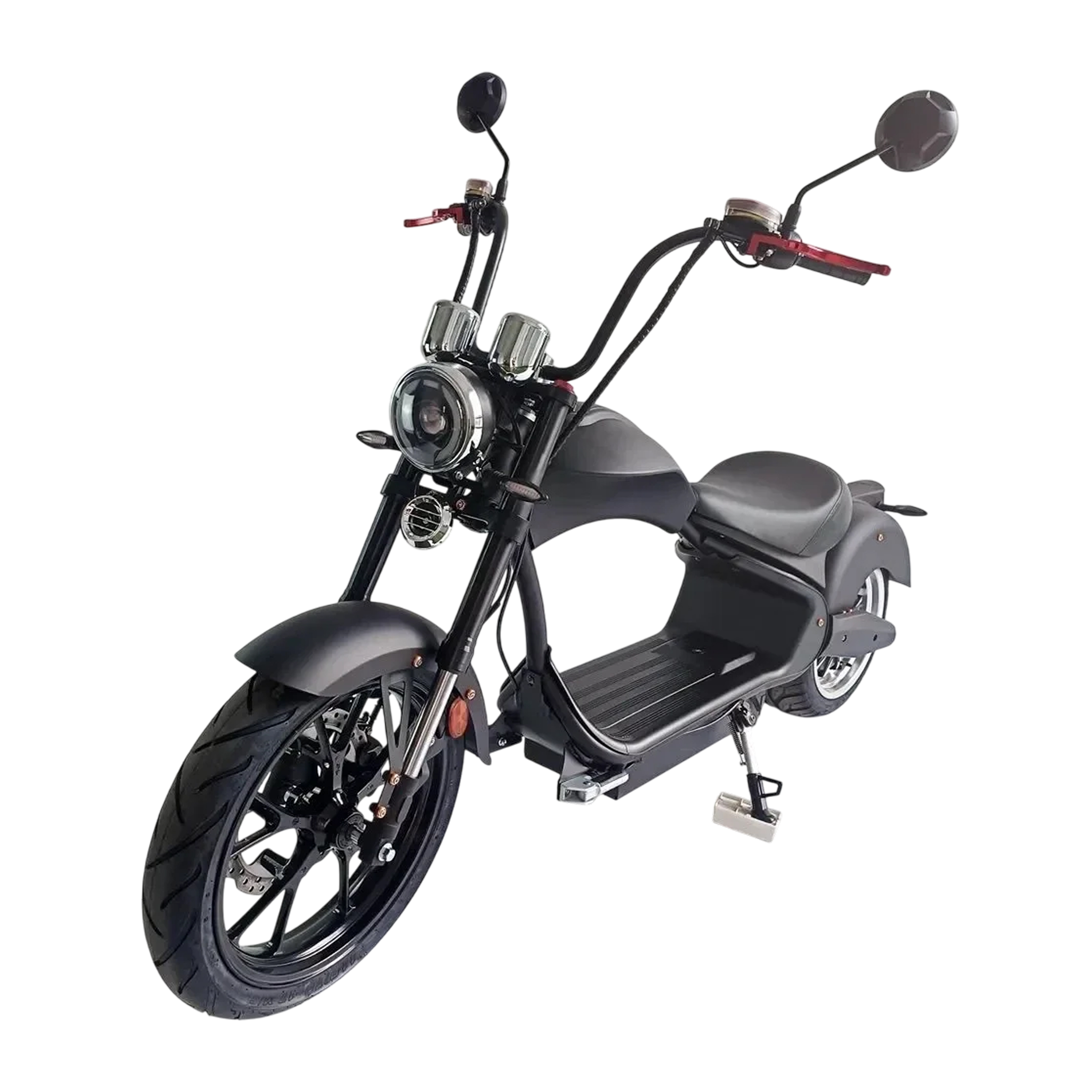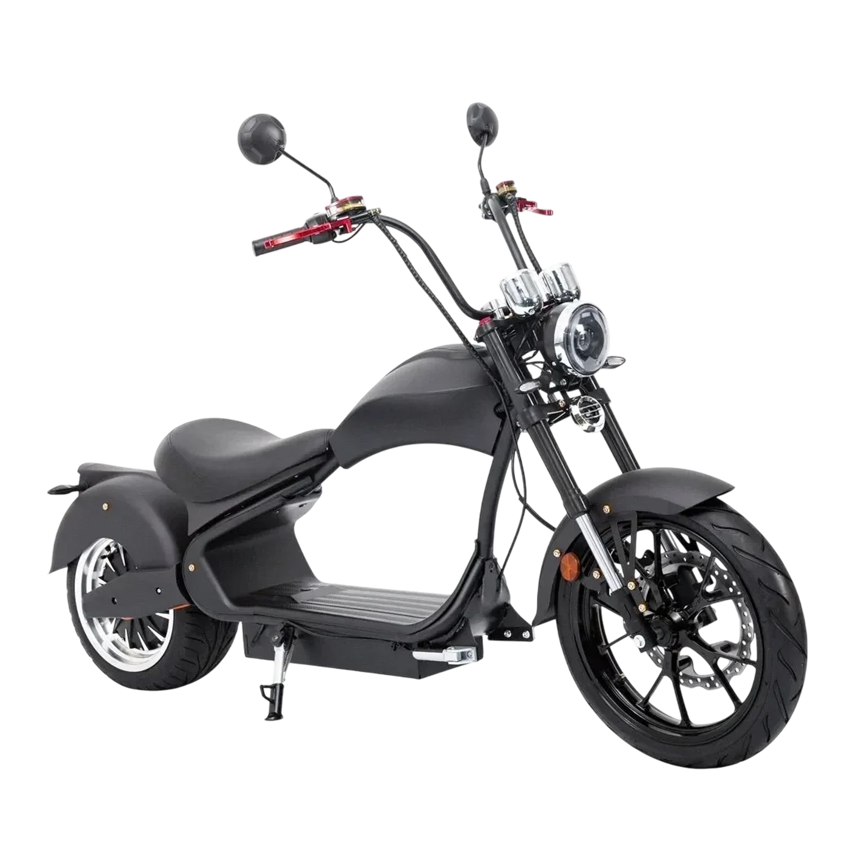 Конструкция шасси с удлиненной базой 1350 мм и низкой посадкой создает характерную для чопперов устойчивость на дороге. Передняя телескопическая вилка и задние гидравлические амортизаторы обеспечивают комфорт при движении по городским дорогам. Дисковые тормоза на обоих колесах с системой рекуперации энергии гарантируют эффективное торможение.