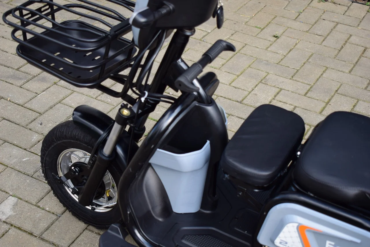 Электротрицикл Беркут — это надёжное трёхколёсное транспортное средство от бренда Meteho, созданное для комфортного и безопасного передвижения по городским улицам и загородным маршрутам. Оснащённый колёсами диаметром 14 дюймов и весом около 90 кг, он демонстрирует устойчивость и отличную манёвренность, что особенно важно для городской среды. Максимальная нагрузка до 200 кг позволяет перевозить не только водителя, но и небольшой груз, что делает модель универсальной для различных задач. Тормозная система представлена барабанными тормозами спереди и сзади, обеспечивающими надёжное и предсказуемое замедление. Электротрицикл оснащён поворотниками, которые повышают безопасность на дороге, а светодиодный дисплей отображает всю необходимую информацию о скорости и состоянии аккумулятора. Максимальная скорость устройства достигает 50 км/ч — оптимальный показатель для ежедневных поездок. Емкость аккумулятора рассчитана на работу при напряжении 48 В, а время полной зарядки занимает 6-8 часов, что удобно для ночной подзарядки. Беркут — практичный и функциональный выбор для тех, кто ценит комфорт, простоту управления и надёжность в компактном формате электротранспорта.