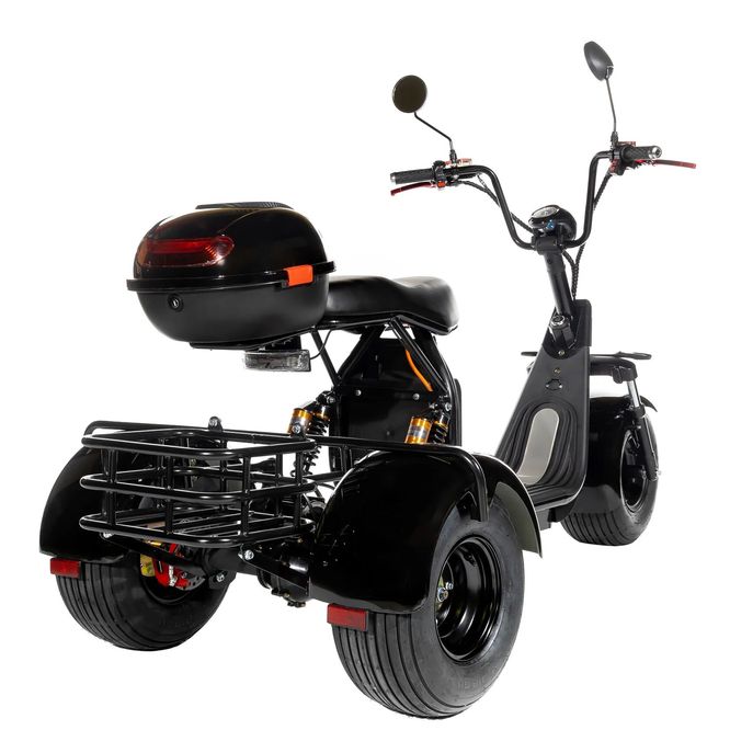 Электротрицикл GT TRIKE X7 PRO представляет собой удобный и функциональный трёхколёсный электросредство, созданное для комфортного передвижения в городских условиях и за их пределами. Он оборудован надувными колёсами, которые обеспечивают отличную амортизацию и сцепление с дорогой на разнообразных покрытиях. Надёжные дисковые тормоза спереди и сзади способствуют безопасному и эффективному замедлению в любых ситуациях. Максимальная скорость GT TRIKE X7 PRO достигает 45 км/ч, а максимальная грузоподъёмность составляет 180 кг, что позволяет комфортно перевозить пассажира или груз. Наличие удобного сиденья и вместительного багажника повышают практичность использования модели. Встроенные поворотники и сигнализация делают поездки более безопасными и информативными для окружающих. Электротрицикл работает на аккумуляторе с напряжением 60 В, что обеспечивает сбалансированное сочетание мощности и автономности для ежедневного применения.