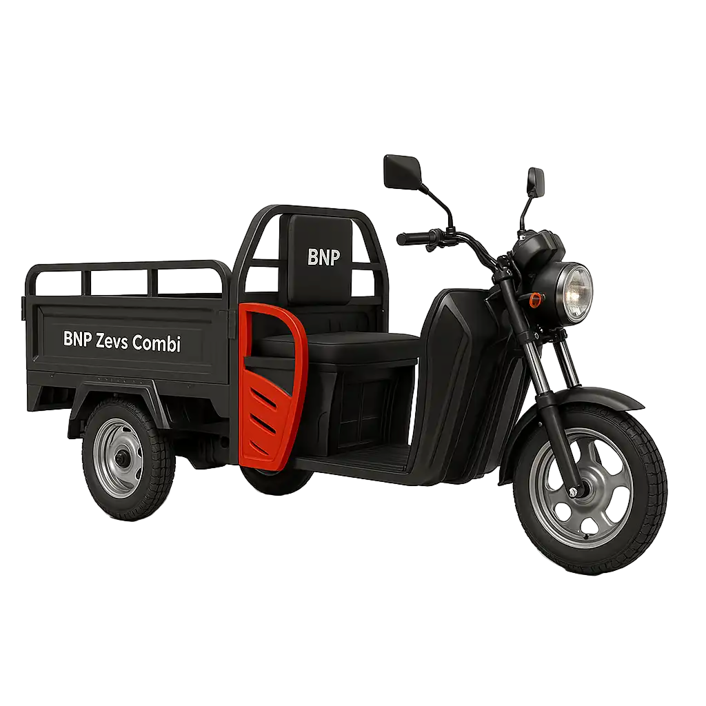 Трицикл BNP Zevs ULTRA COMBI представляет собой универсальное трёхколёсное транспортное средство, сочетающее функции грузового и пассажирского электротранспорта. Конструкция оснащена мощным электродвигателем 700 Вт, обеспечивающим скорость до 35 км/ч, и аккумулятором ёмкостью 32 А·ч, что позволяет преодолевать до 60 км в режиме поддержки педалирования. Уникальной особенностью модели является повышенная грузоподъёмность 400 кг, позволяющая транспортировать двух взрослых пассажиров с дополнительным грузом. Технические решения включают усиленную раму, оптимальное распределение веса и трёхточечную систему устойчивости для безопасного движения при полной загрузке. Эргономичное двухместное сиденье с анатомическими спинками обеспечивает комфорт при продолжительных поездках. Функциональность расширена за счёт складной конструкции для компактного хранения, современной светотехники и информативной панели управления. Модель демонстрирует эффективность в различных сценариях эксплуатации — от ежедневных городских маршрутов до коммерческих перевозок. Сбалансированные характеристики делают трицикл практичным выбором для пользователей, требующих от транспорта надёжности, универсальности и экономичности. Техника соответствует требованиям к экологичному транспорту с нулевым уровнем выбросов.
