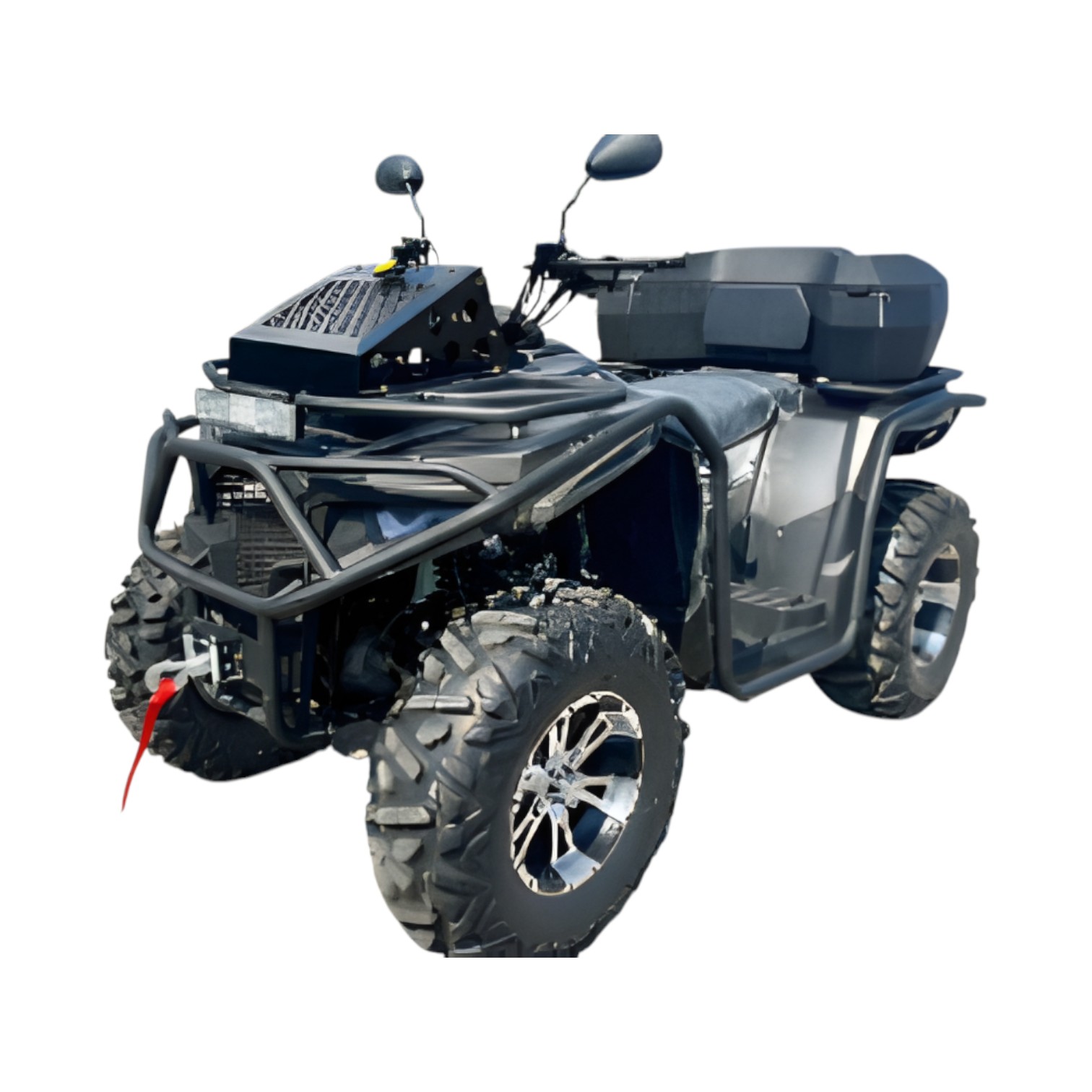 ATV Loncin 400cc (4×4) — надёжный и сбалансированный квадроцикл для тех, кто ценит мощность и универсальность в одной машине. Оснащён одноцилиндровым 4‐х тактным двигателем объёмом 386 см3 и мощностью 30 л.с., он даёт уверенный запас тяги для подъемов, буксировки и внедорожных маршрутов. Жидкостное охлаждение поддерживает стабильную работу двигателя при длительных нагрузках, а электростартер обеспечивает быстрый и лёгкий запуск. Объём топливного бака 13 л оптимален для длительных выездов без частых остановок, а масса 300 кг при продуманной развесовке добавляет устойчивости на трассе. Компактные габариты 2220×1190×1320 мм и колёса 12" делают машину манёвренной в лесных тропах и на узких просёлках. Полный привод 4×4 повышает проходимость в сложных условиях, делая Loncin отличным выбором как для работы в хозяйстве, так и для активного отдыха.